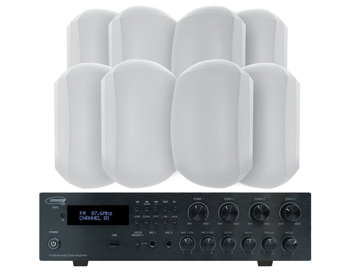 Weconic Outdoor Speaker Package with 320W Bluetooth Amplifier White 184C+4xWTP660WHT
