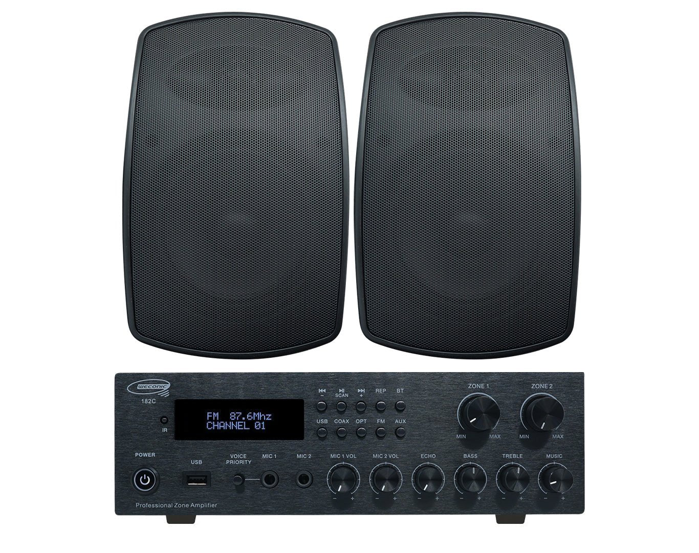 Outdoor Speaker Package with 160W Bluetooth Amplifier Black 182C+SA850B