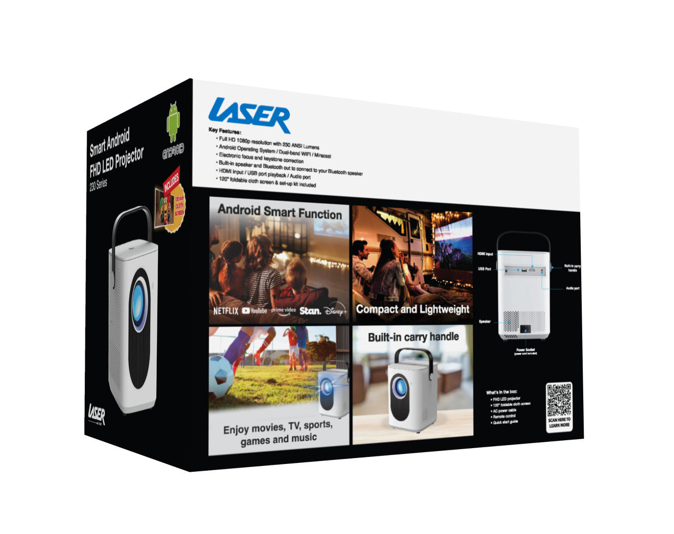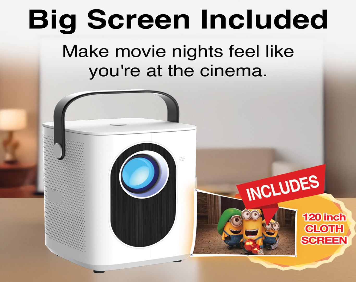 120” Screen Included – Enjoy a cinema-style big-screen experience anytime, anywhere.