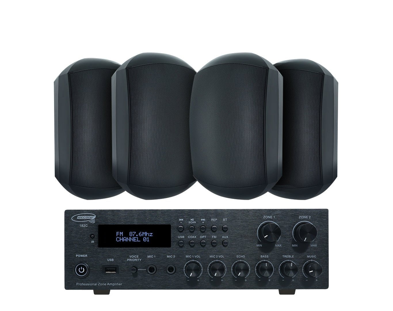 Weconic Outdoor Speaker Package with 160W Bluetooth Amplifier Black 182C+2xWTP660BLK