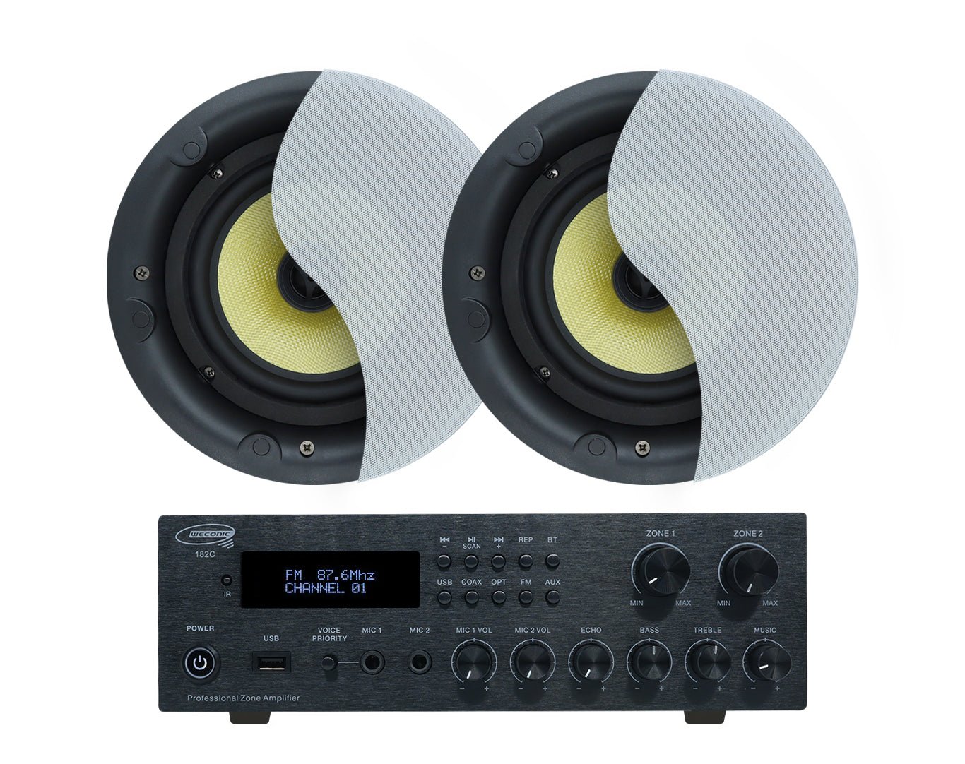 Weconic Twin 8" Speaker Package with Bluetooth Amplifier Cafe Restaurant Office 182C+LGC83